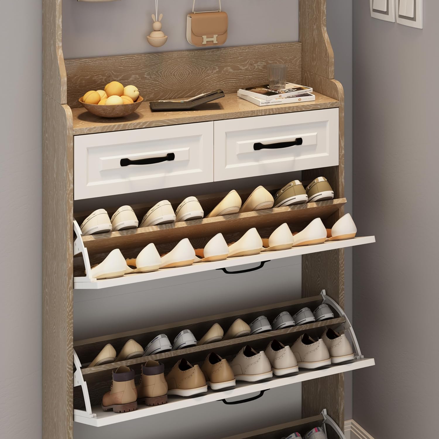 Met meerdere vakken biedt deze kast ruimte voor verschillende soorten schoenen. De vouwdeuren zorgen voor gemakkelijke toegang en houden uw schoenen stofvrij en netjes.